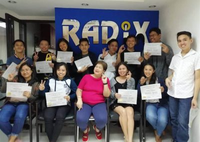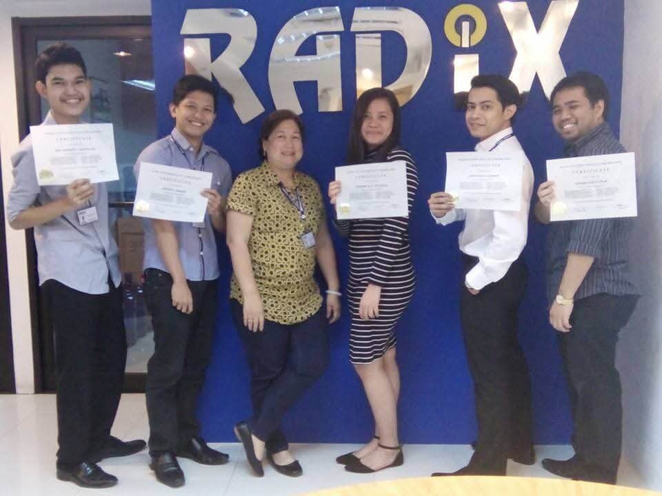 To ensure availability of qualified developers, Radix provides training in RPG/LE programming. For its internal staffing, college graduates undergo exhaustive screening process via programming aptitude tests and a series of interviews.